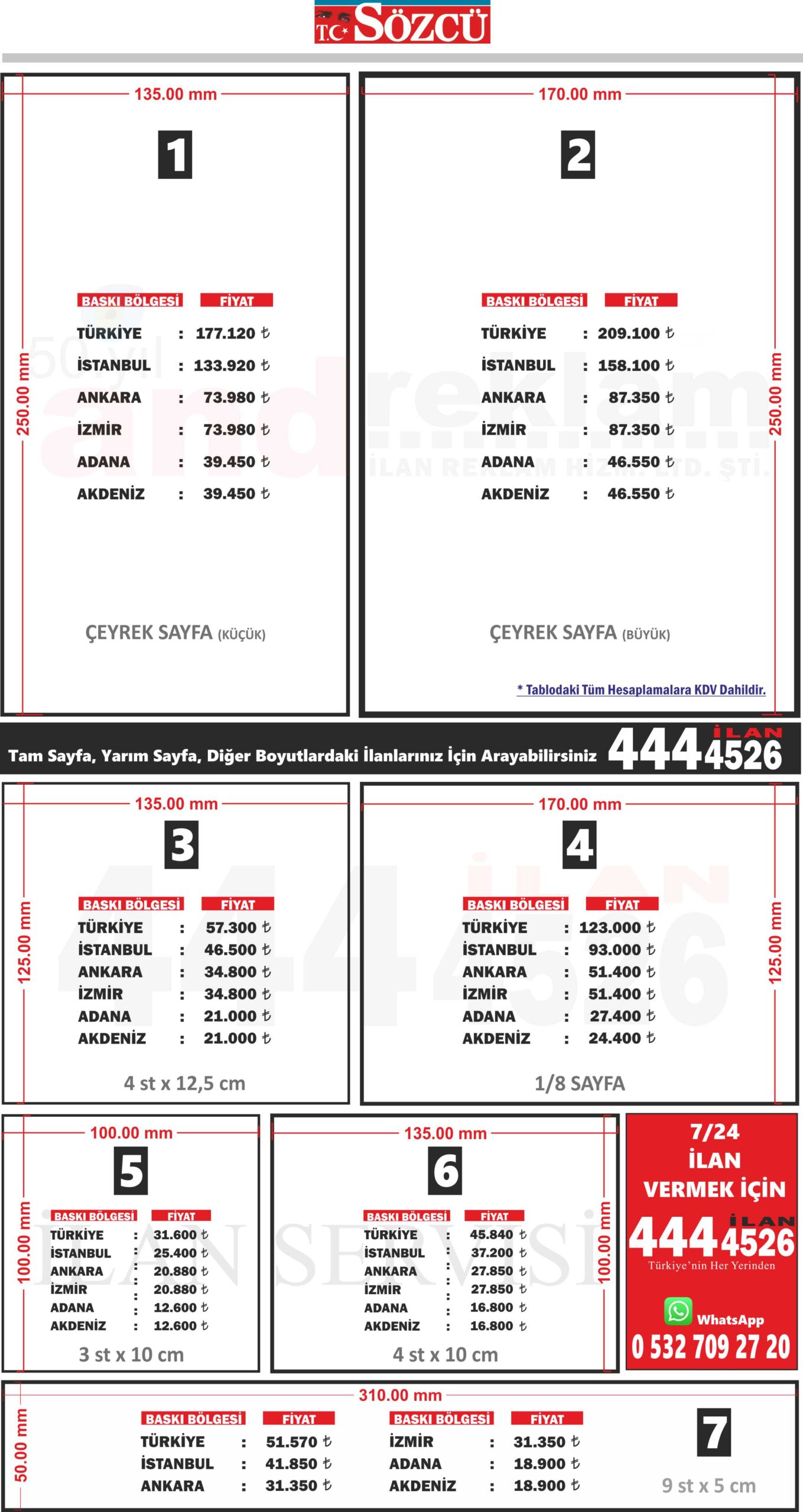 - Türkiye’nin her yerinden 444 45 26 numaralı SÖZCÜ REKLAM hattını arayabilir,